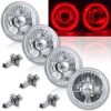 5-3/4″ Red LED Halo Halogen Light Bulb Headlight Angel Eye Crystal Clear Set